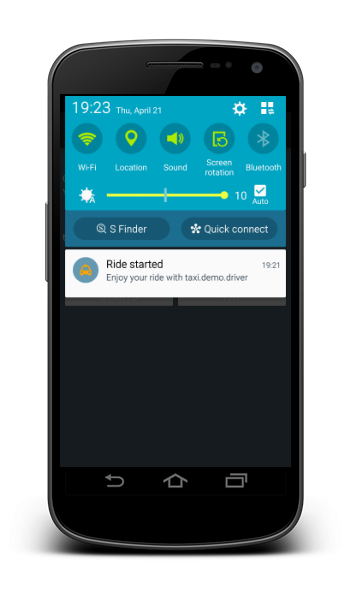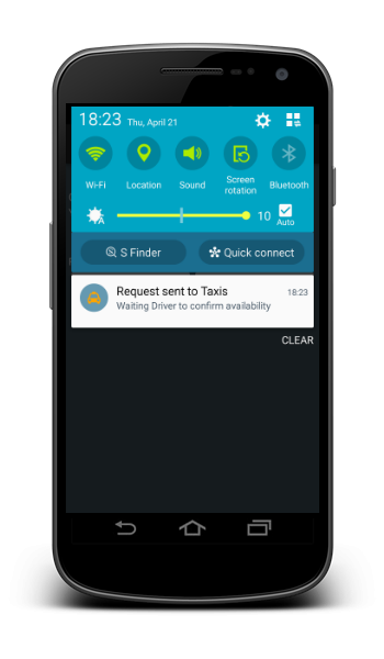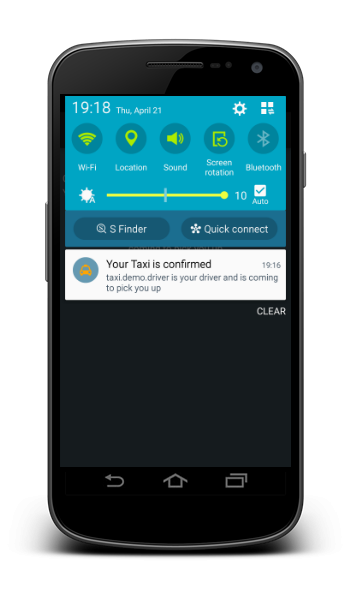 The flow starts by registering the user in the backend as a passenger or as a driver. Then, when a passenger requests a Taxi, the backend delivers a push notification to all drivers that are not currently driving a passenger.