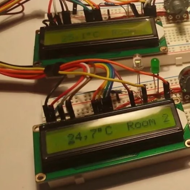 A SOM (System on Module) running the Android Things operating System with custom electronics to display the tempearature readings of two sensors that communicate over Bluetooth Low Energy with the hardware.